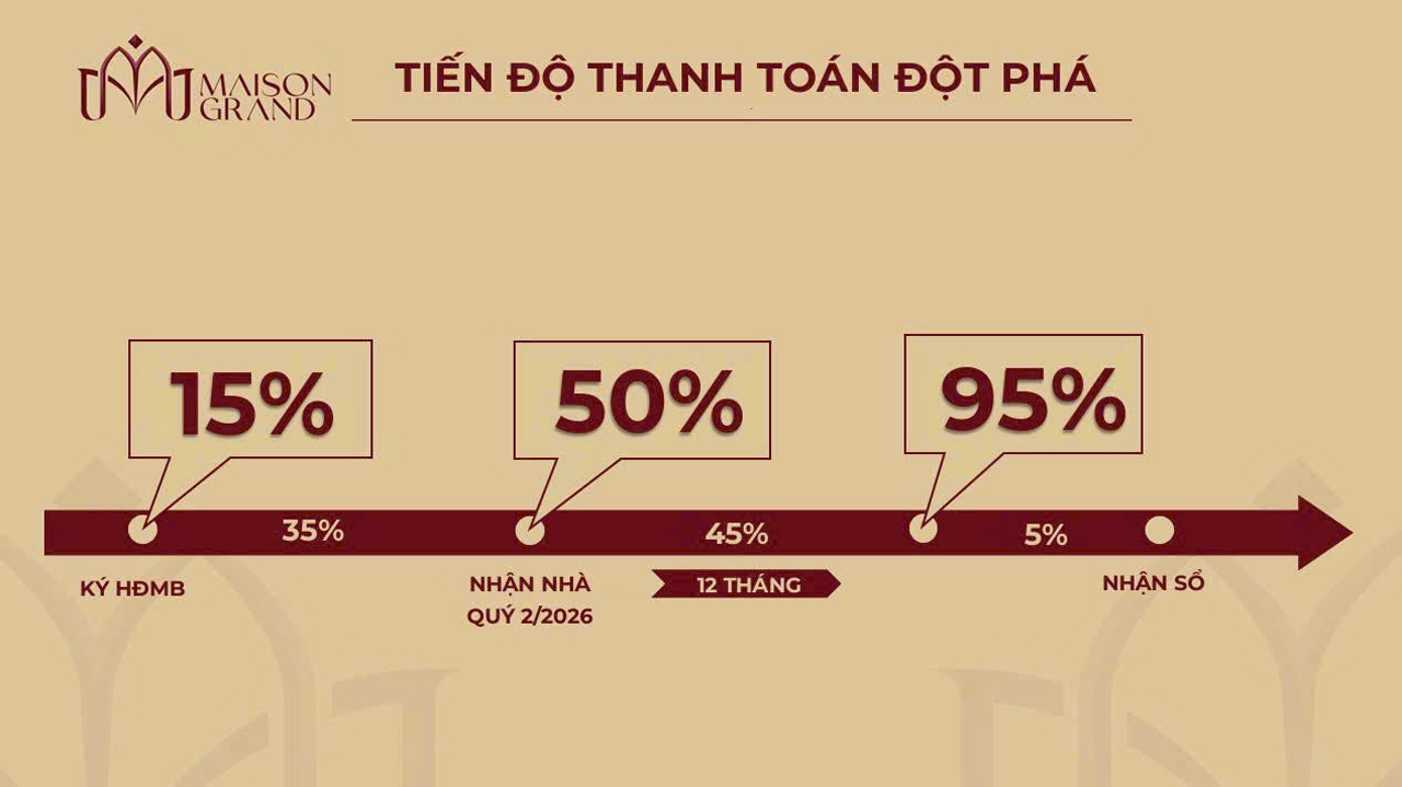 Chỉ cần thanh toán linh hoạt 50% đến khi nhận bàn giao, bạn đã có thể sở hữu căn hộ cao cấp Maison Grand – biểu tượng sống mới tại “Siêu đô thị” TP.HCM.