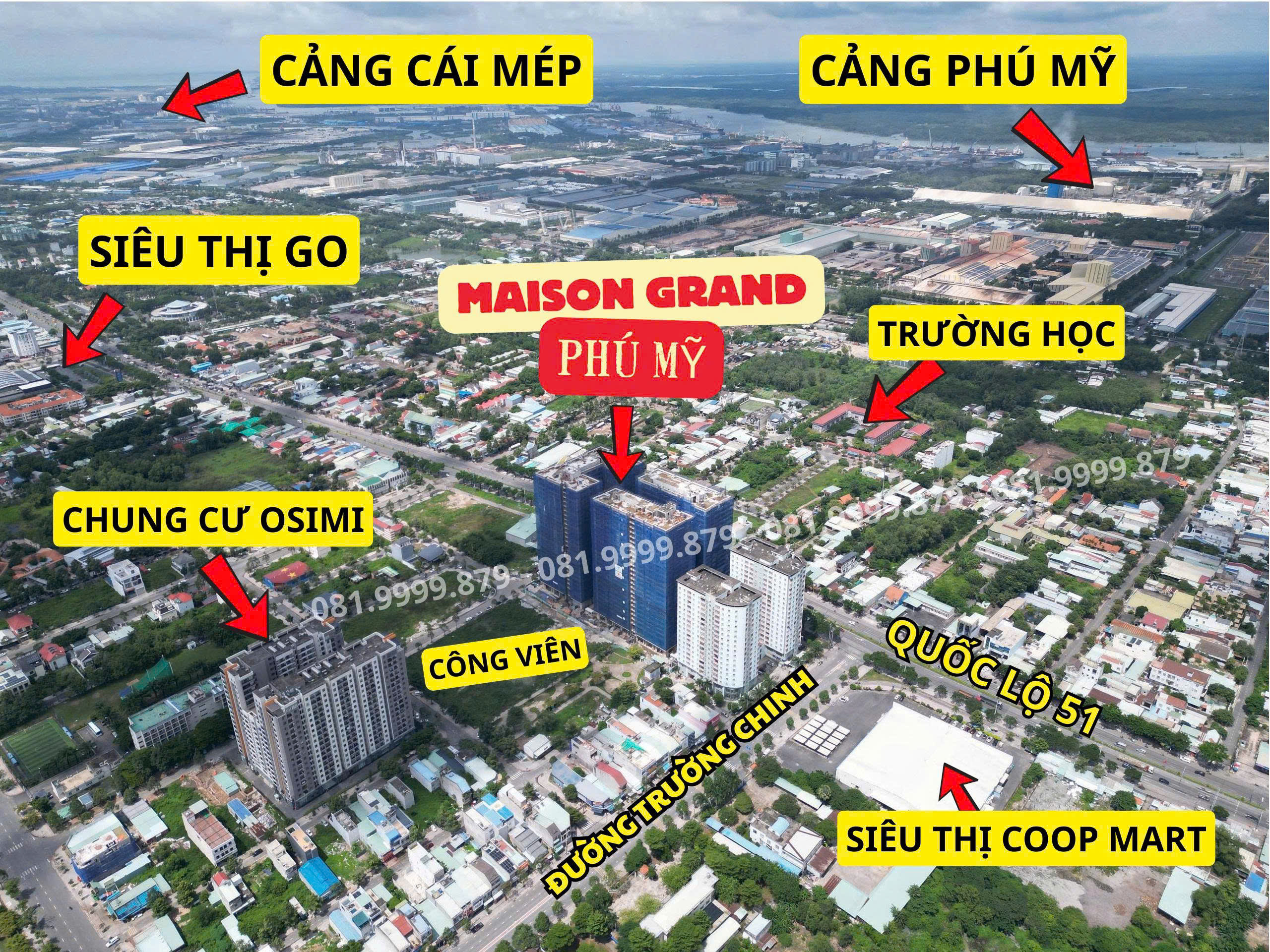 Dự án Maison Grand tọa lạc ngay mặt tiền Quốc Lộ 51, thành phố Phú Mỹ, tỉnh Bà Rịa Vũng Tàu, nay thuộc phường Phú Mỹ, thành phố Hồ Chí Minh.